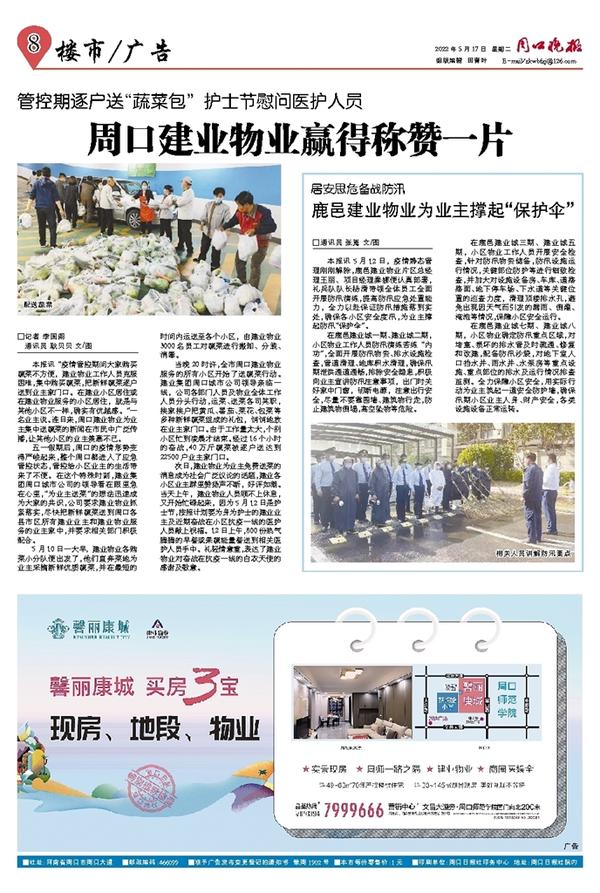 在鹿邑建业城一期、建业城二期,小区物业工作人员防汛演练苦练“内功”,全面开展防汛物资、排水设施检查,管道清理、地库积水清理,确保汛期泄洪通道通畅,排除安全隐患,积极向业主宣讲防汛注意事项,出门时关好家中门窗,切断电源,注意出行安全,尽量不要靠围墙、建筑物行走,防止建筑物倒塌,高空坠物等危险。