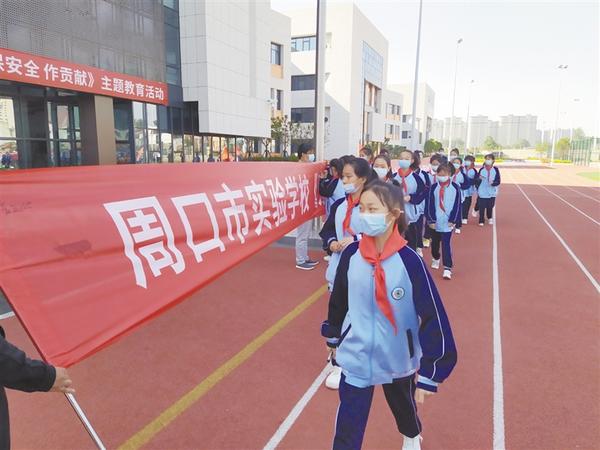 本报讯 5月16日,周口实验学校举行“爱家乡 护亲人 保安全 作贡献”主题教育活动,全体师生签名,化身“抗疫卫士”,家长通过手机直播方式感受到了一堂特殊意义的生命教育课,共同感悟生命的珍贵。