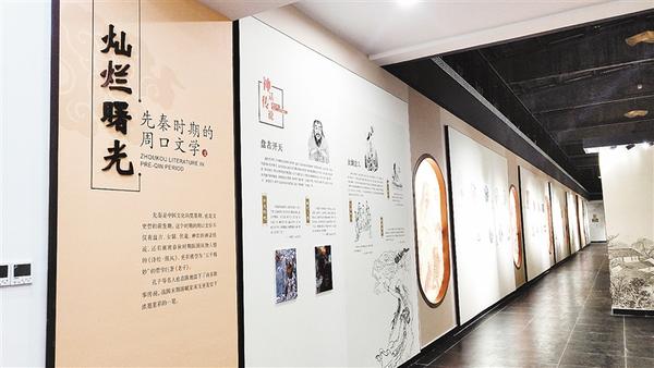 文学馆系统展示了周口文学从远古到当代的发展史,共收入了周口籍、旅居周口及书写周口的作者232人。核心展区分为九个部分,主要展示周口籍文人、旅居周口文人和书写周口的相关作品。