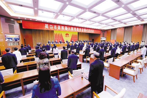5月22日上午,周口市第四届人民代表大会第八次会议圆满完成各项议程后胜利闭幕。 记者 王映 摄