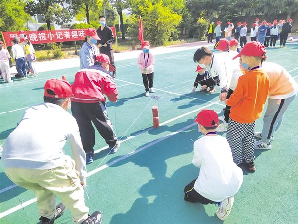 本报讯 5月21日,周口晚报小记者走进自己的“大本营”——周口报业传媒集团,参加在户外举行的趣味挑战活动,投壶、网红路、合力建塔、投壶、水枪大战等项目精彩不断,气氛热烈。