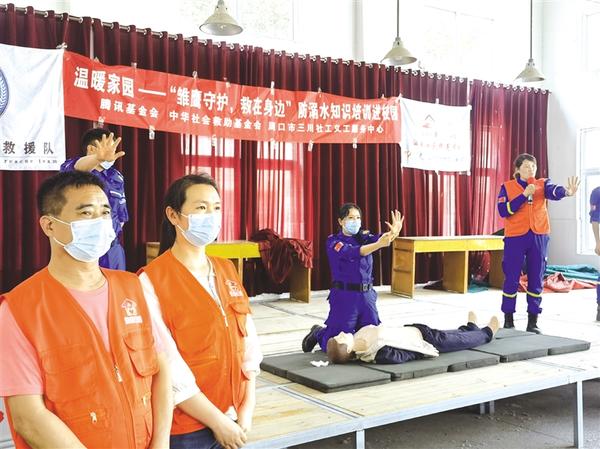 5月25日,蓝天救援队培训讲师通过模拟人向师生演示心肺复苏术。当日,周口市三川社工义工服务中心(三川社工)邀请扶沟县蓝天救援队的培训讲师来到腾讯公益慈善基金会、中华社会救助基金会“温暖家园”公益项目,来到扶沟县柴岗乡支亭行政村支亭小学和西营行政村柴岗小学,开展“雏鹰守护,‘救’在身边”防溺水知识培训进校园活动,进一步提高学生的安全防范意识和自救自护能力。②16记者 窦娜 张艳丽 摄