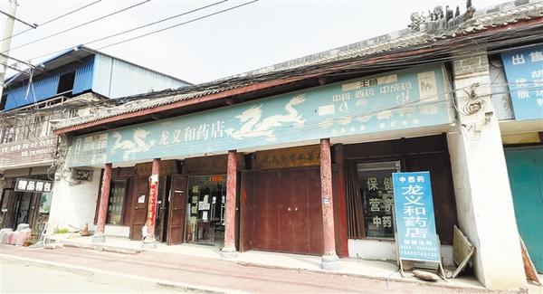 雷义和、龙义和中药铺为清代建筑,在一片现代房屋中显得尤为不同,其中浓缩着千年古镇的回声。该药铺坐北朝南,硬山式建筑,分上下两层,砖木结构,灰布瓦盖顶,五架梁,面阔八间,进深一间,有前廊,檐柱八根,木质楼板。脊枋题正楷墨书“皇清乾隆五十六年岁次辛亥仲春主人刘颖发建造”字样。“这房子祖上传下来的,我们的宝贝,比店里所有的药材加起来都‘主贵’(河南方言,意为珍惜、贵重)!”看店人卫玉红说。