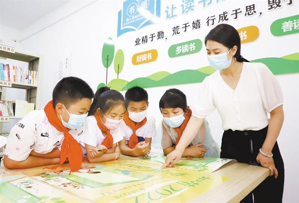 5月30日,淮阳区白楼镇沙沃行政村农家书屋内,来自村里的20多名小学生,正在这里参加“护苗·绿书签”好书推荐活动。
