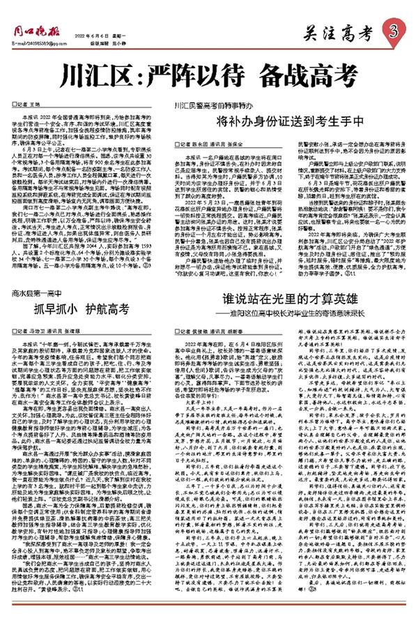 2022年高考在即,在6月4日淮阳区陈州高中毕业典礼上,校长孙博的一番寄语意味深长。他化用《孤勇者》歌词,给“英雄”定义,鼓励即将奔赴高考考场的学生诚实生活、勇敢坚强;借用《人世间》歌词,告诉学生成为父母的“欢喜”,理解父母,凡事尽力。一番寄语触动学生们的心灵,赢得阵阵掌声。下面节选孙校长的讲话,希望对即将赶赴考场的学子有所启发。