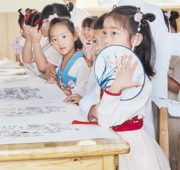 图为周口市第七幼儿园的小朋友感受木板年画魅力。近日,市非物质文化遗产保护中心、市关帝庙民俗博物馆联合举办“认识非遗 从孩子抓起”非遗进校园活动。活动邀请省级非遗周家口木版年画传承人夏明月,为孩子们带来了一场别开生面的非遗体验活动,让传统文化的种子在孩子心中萌芽。①5记者 王晨 摄