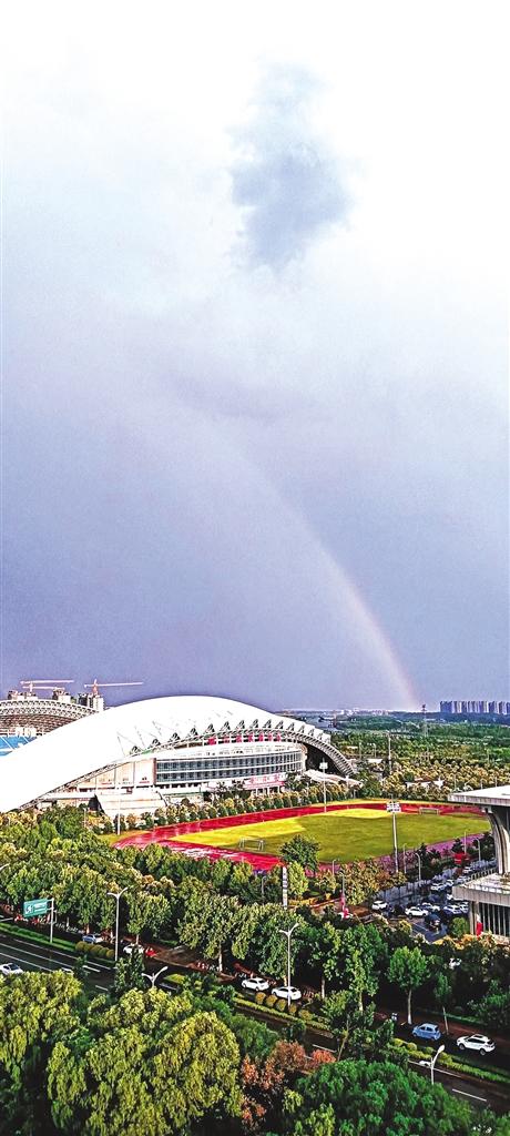 6月13日18时20分左右,我市中心城区上空惊现彩虹美景。