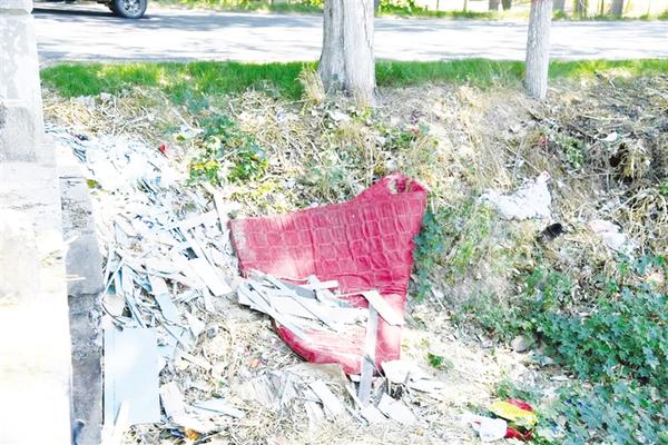 扶沟县桐丘街道办事处320省道北侧,扶沟永福木业东侧沟内生活垃圾遍地,长期无人清理