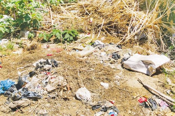 西华县红花集镇红花村幸福沟内有大量生活垃圾、秸秆