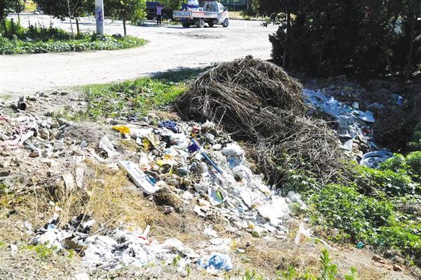 西华县艾岗乡潘岗村北头路边有生活垃圾堆积
