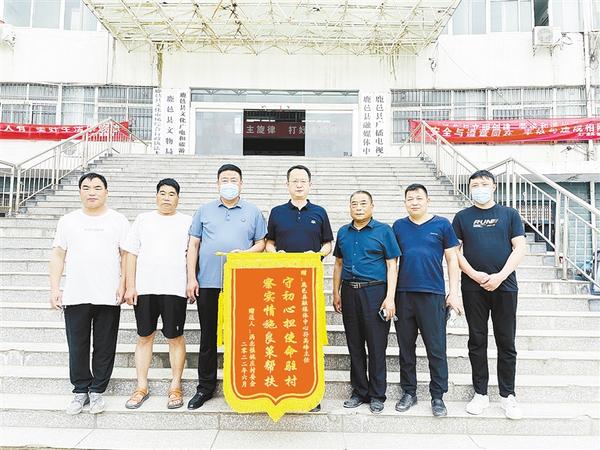 “聚合力,配合村委做好产业发展布局规划;兴产业,因地制宜推进集体经济提质增量;强基础,改善环境扮靓宜居宜业乡村美景;办实事,贴心服务情系群众温暖百姓心……”6月13日上午,鹿邑县涡北镇姚庄行政村村“两委”干部专程来到县融媒体中心将两面印着“守初心担使命驻村 察实情施良策帮扶”“勇担使命下基层 驻村帮扶解民忧”的锦旗,送到驻村干部孙高峰手中,感谢他和县融媒体中心为姚庄行政村办的实事好事。