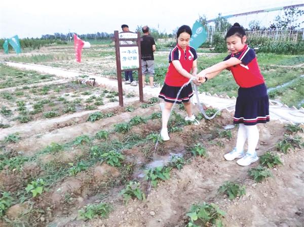 6月18日,周口市文昌小学学生在中心城区建业绿色基地开展农耕文化实践活动。