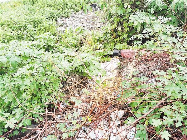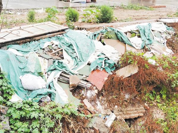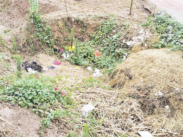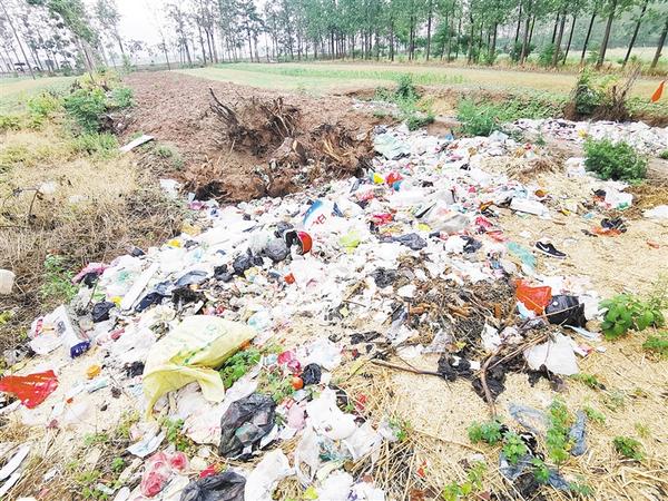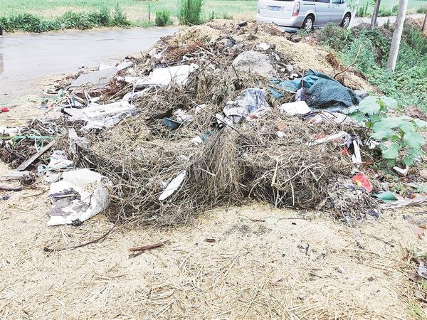 郸城县东风乡老杨庄村村北路边存在大量垃圾堆积现象