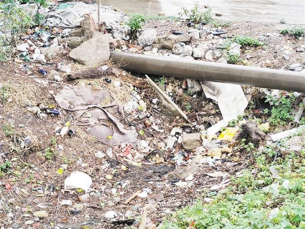 郸城县新城办事处罗楼村黄姑河沿岸存在大量生活垃圾散落现象