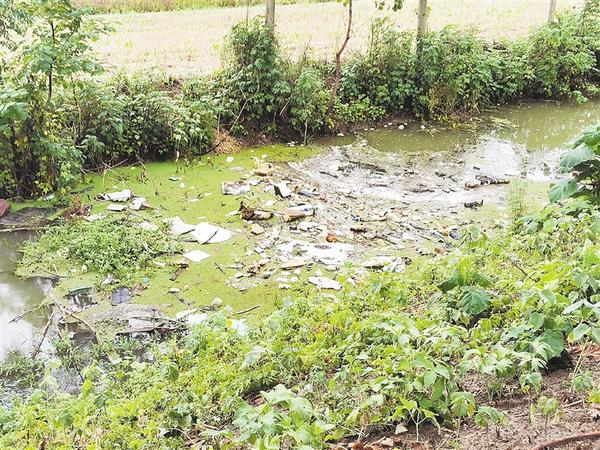 沈丘县卞路口乡前朱庄村南路边存在大量生产生活垃圾堆积现象,沟渠内有白色漂浮物