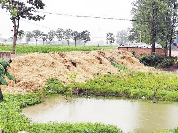 沈丘县卞路口乡西赵楼村桥头存在大量秸秆垃圾堆积现象