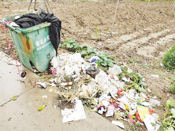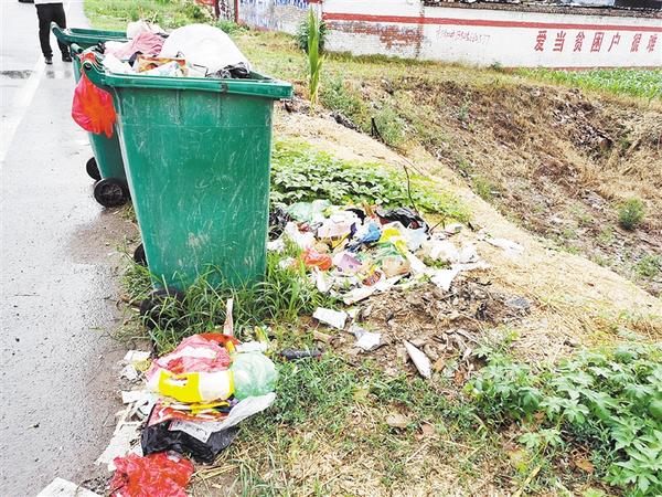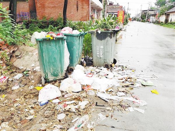 沈丘县白集镇白庄村存在路边垃圾箱破损、生活垃圾清运不及时现象