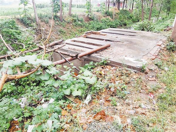 沈丘县卞路口乡后朱庄行政村路边有一处旱厕,厕屋已拆、但粪池未处理,存在安全隐患,沟渠边坡存在大量垃圾杂草堆积现象