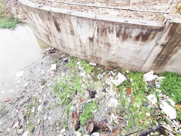 沈丘县白集镇胡桥桥头存在垃圾漂浮物、杂草堆积现象