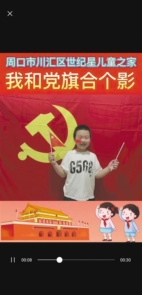 在“我与党旗合个影 对党说说心里话”微视频推选活动中,川汇区各中小学、幼儿园已经拍摄微视频1000多个,精心选出200个在川汇教育公众号、川汇区党员一家亲微信群、区教体局党务工作群以及微信朋友圈广泛推送,浏览量达到20多万人次。通过制作微视频,广大师生表达了永远听党话、坚定跟党走的铮铮誓言。