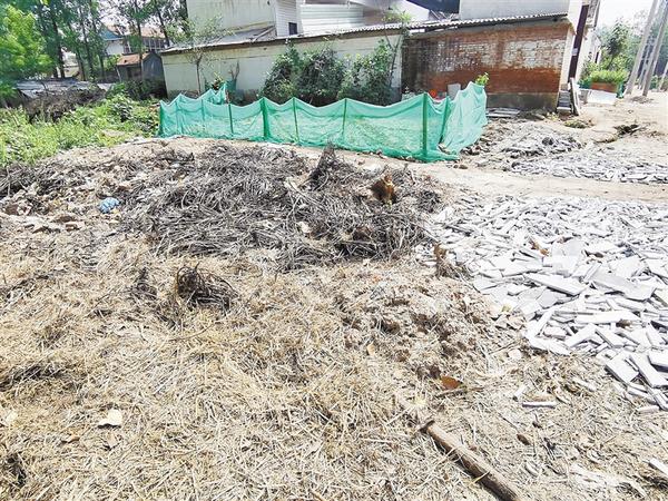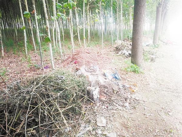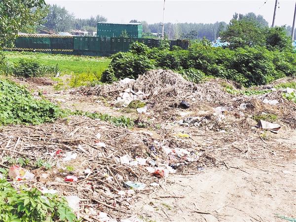 黄泛区农场东环路道路沿线存在树枝秸秆、生活垃圾和杂物堆积数十米现象