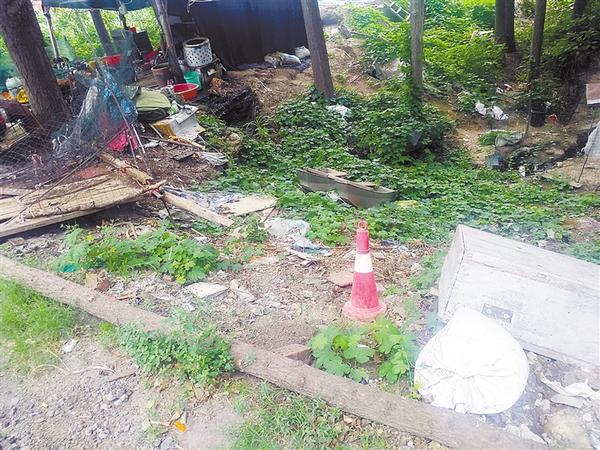 黄泛区农场交通路公厕前有一处露天垃圾存放点,存在垃圾存放不规范,大量生活垃圾堆积现象