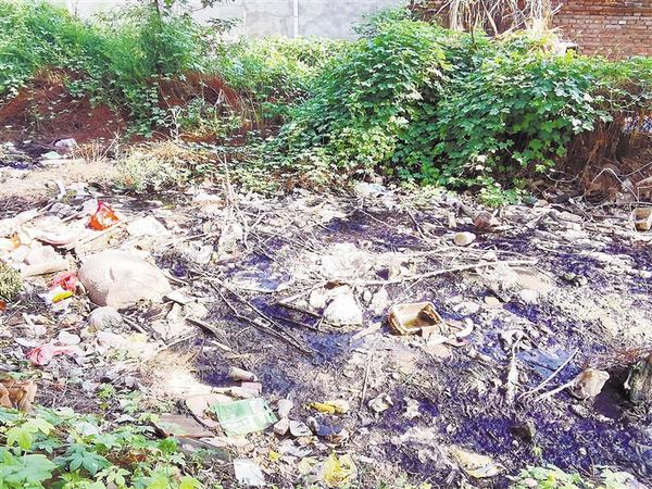 沈丘县槐店回族镇薛庄村内坑塘内有大量垃圾漂浮物,坑塘边有建筑垃圾和杂物,村内还有多个旱厕