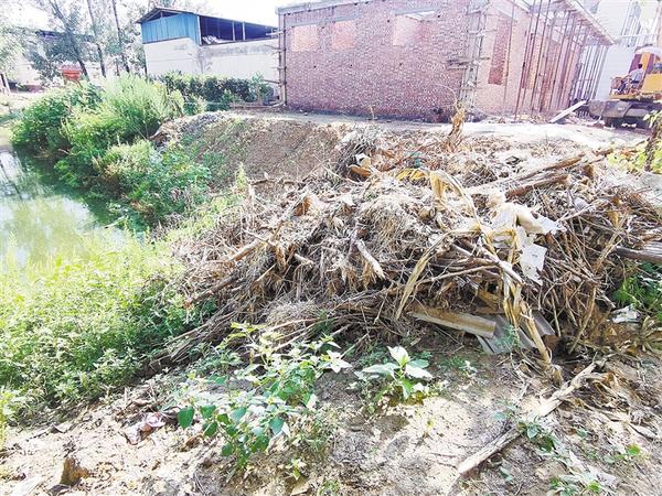 沈丘县莲池镇樊庄村境内沟塘边有大量陈年垃圾 秸秆杂物无人清理