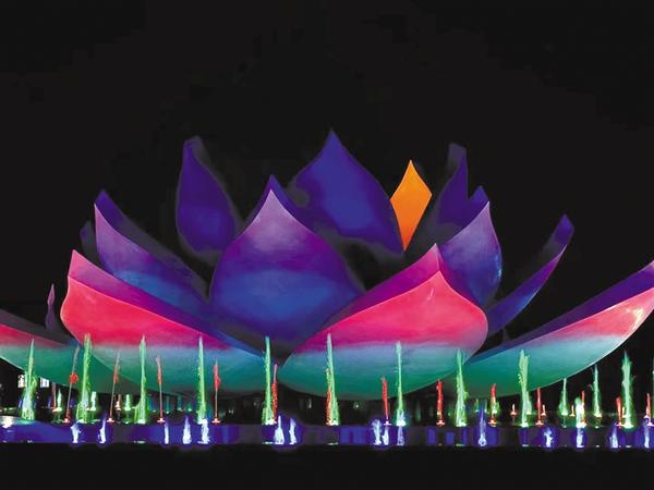 荷花景观池作为淮阳荷花苑提升改造项目的核心工程目前已经完工,增加了景观灯光、喷泉、喷雾等。音乐喷泉灯光秀已惊艳登场,莲花造型中的一股股水柱随着音乐的律动,光波流转间不停变换色彩和造型,给观众奉上了一场集声光电于一体的视听盛宴。记者 侯俊豫 摄