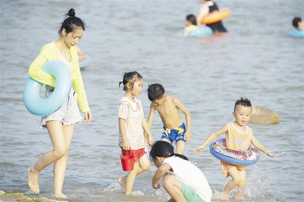 7月26日下午,市民在市城乡一体化示范区引黄调蓄项目的亲水沙滩戏水避暑。市城乡一体化示范区引黄调蓄项目的亲水沙滩建成后,市民纷至沓来,孩子们在大人看护下,戏水玩耍,欢度暑假。③2记者 梁照曾 摄