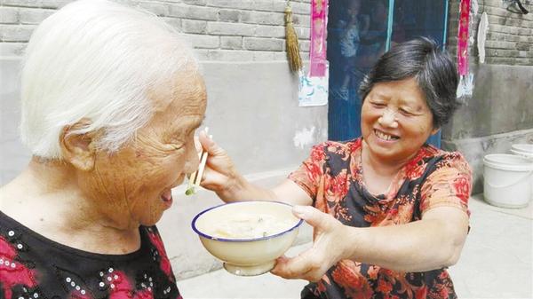 每天早上先伺候婆婆穿衣服,把人穿得暖暖和和坐在院子里晒太阳,她才去忙别的。婆婆喜欢吃什么,她就做什么饭,这些年从没有人见她给自己好好做一顿饭,她却将婆婆的口味爱好记得清清楚楚。碰到农忙的时候,她总会先给婆婆做好饭,有汤有菜,放在锅里温着,自己却只带着干馒头和水,下地干活了。这些年她总习惯把最好的留给婆婆,几十年如一日。婆婆行动不便,她亲自给婆婆洗脸、洗脚,仔细修剪指甲,让老人家每天干干净净。冬天乡下冷,她总会打一盆热水给婆婆泡脚。随着婆婆年岁已高,需要照顾的地方越来越多,她从未说过一句怨言。碰上子女送来的好东西,她先给婆婆,给孙子孙女。在她日复一日,年复一年的悉心照料中,婆婆齐玉兰现已95岁高龄,而王梅荣也已经75岁了。