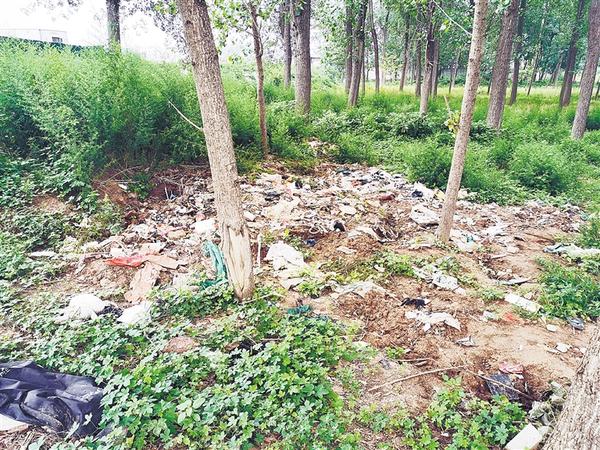 港口物流产业集聚区李埠口办事处苑楼村村西,周口港区印象广场项目所在地对面树林内存在大量生活垃圾、秸秆和废弃物现象
