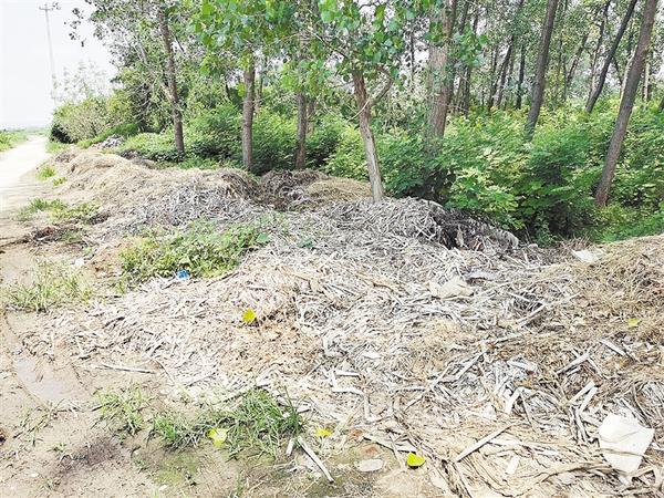 城乡一体化示范区许湾办事处西翟桥村通往黄庄村的路边存在堆积大量生活垃圾、废弃物和秸秆现象