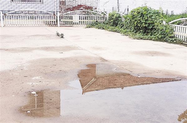 城乡一体化示范区许湾办事处张埠口村村北文化广场内路面存在积水、生长有杂草现象
