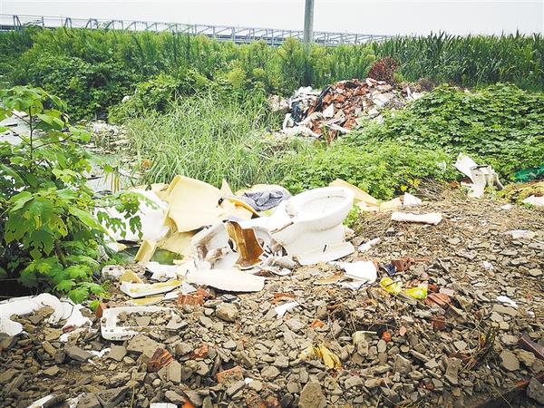 经济技术开发区周口万达公园南门口对面路边垃圾坑内存在生活垃圾、建筑垃圾和杂物现象