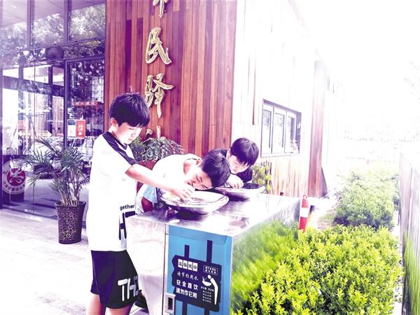 8月1日,记者在中心城区五一广场上看到,直饮水点设置在广场的市民驿站旁边,设有两个出水口,方便大人和孩子使用。广场上人来人往,不时有市民前来饮水。