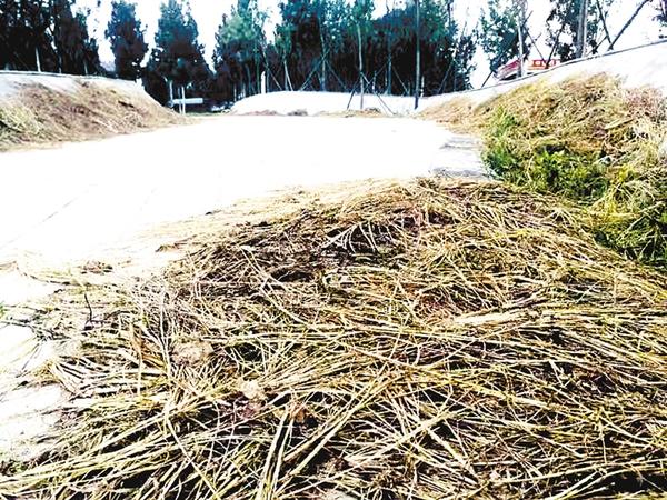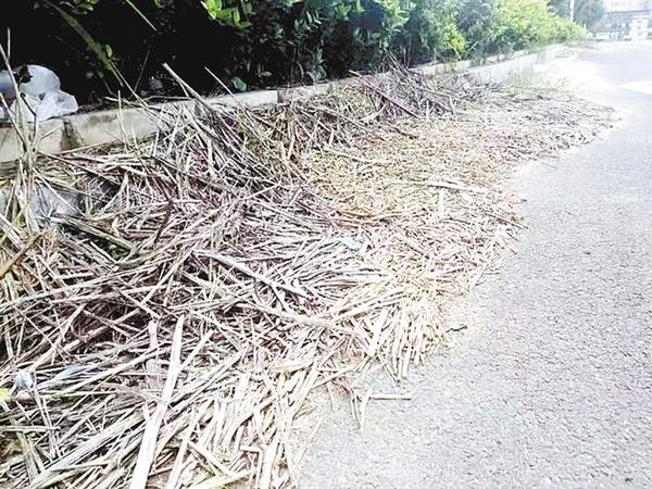 川汇区金海路办事处银珠路小学南道路上有多处秸秆堆积