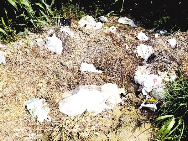 川汇区华耀城办事处后孙庄村入村水泥路旁有秸秆和杂物堆积