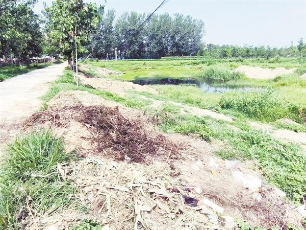 淮阳区刘振屯乡赵腰庄村东头坑塘边有大量生活垃圾、秸秆