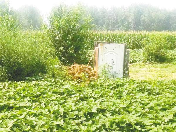 项城市三店镇田集村头有一处户外简易旱厕,存在杂物堆积现象