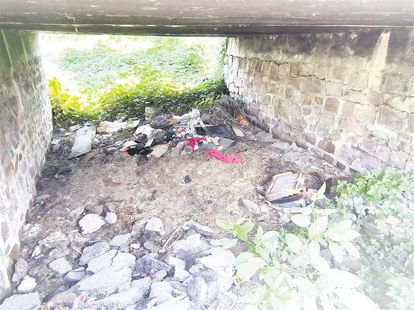 项城市高寺镇001乡道张老家村南桥下存在堆积大量杂物现象