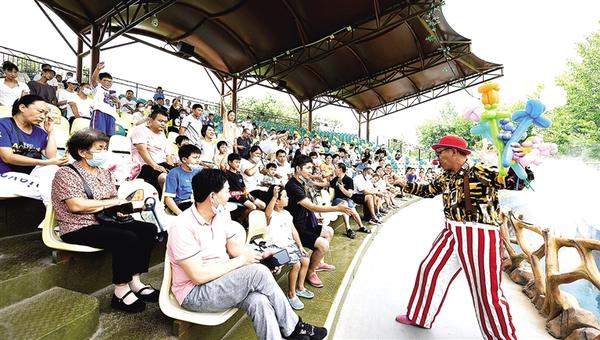 8月9日上午,周口市野生动物世界工作人员和游客进行互动。暑假期间,周口市野生动物世界成了孩子们的乐园,在这里,不仅可以和野生动物零距离接触,园内精彩的游乐活动、杂技表演更让孩子们乐翻了天。③19