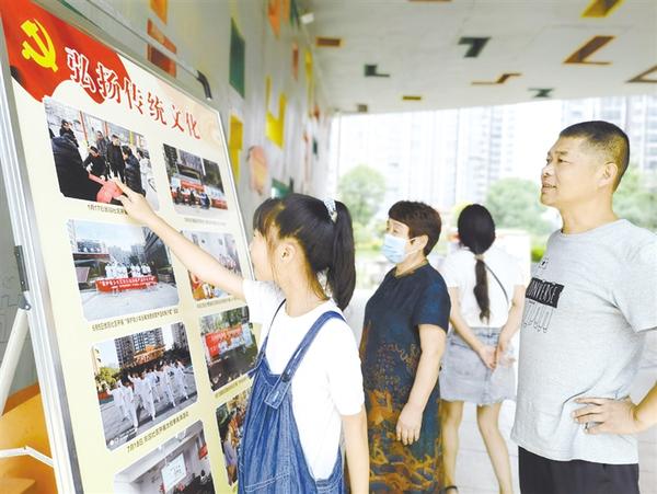走进景园社区,弘扬社会主义核心价值观和中华优秀传统文化、传递正能量的宣传标语格外醒目。在大门口附近的精神文明长廊内,摆放着名人字画、红色记忆标识、宣传展板,居民在此游玩,受到文明新风熏陶。“除了营造宣传氛围,让文明新风入脑入心外,我们还精心组织开展多场活动,比如‘道德使者’‘五好家庭’‘好婆婆’‘好媳妇’‘好儿子’评选,举办‘青少年防溺水安全知识宣讲’等,以多样的形式,让文明实践成为群众的行动自觉。”该社区党支部书记朱美玲说。