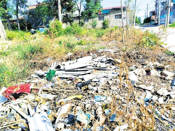 商水县东城办事处柴坑村村内西侧各类垃圾散落成片