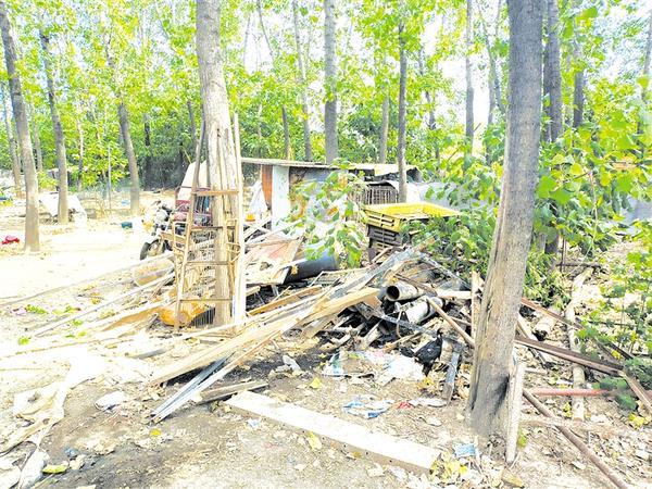 西华县娲城办事处海通·润园项目西南角空地上各类垃圾堆积