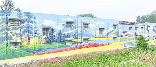 8月31日清晨,在工人们的挥毫泼墨下,一副巨型山水画卷出现在周口港区小杨楼村的民房上。据施工单位负责人介绍,这是目前为止,全市最大的一处墙体喷绘,长度为150米,高8米。为推进全国文明城市建设,周口港区近期邀请了专业喷绘团队,对辖区河堤沿岸村庄民房、乡村主干道进行喷绘创作。喷绘内容包含党建、振兴乡村、港口、环保、风景画、网红墙等,与沙颍河沿岸田园风光形成一道美丽的画卷。③6 记者 宋风 摄
