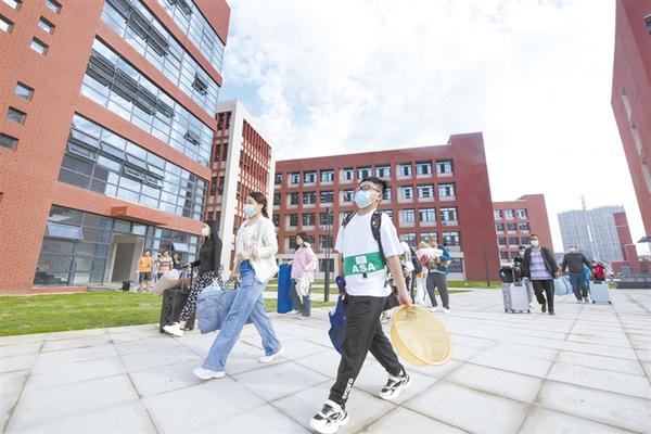 9月1日,家长陪孩子到周口市城乡一体化示范区桂园路中学报到。当日,周口市中心城区29所新建改扩建中小学开学,迎来新生。记者 梁照曾 摄