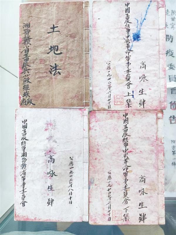 李洪东收藏的高咏生手写笔记共有四本,包括高咏生用毛笔抄写的公文《中国工农红军中央革命军事委员会》文件上集和下集、《湘鄂赣省工农兵苏维埃政府土地法》、1932年书写的文件《目前扩大红军的计划大纲》。文件上面都有“高咏生肄”几个字,盖有“高咏生印”大红印章。