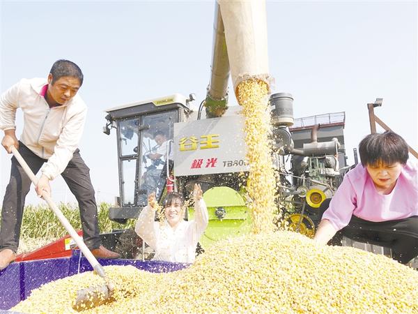 9月14日,沈丘县洪山镇袁庄村一块订单优质玉米基地,农机手驾驶收割机忙着收玉米。连日来,沈丘县洪山镇采取有力措施,积极为当地种植合作社、家庭农场、种田大户和“小农户”广泛联系并统筹调度收割机等农机具,利用晴好天气,助力农民抢收玉米,力保颗粒归仓。通讯员 谢辛凌 摄