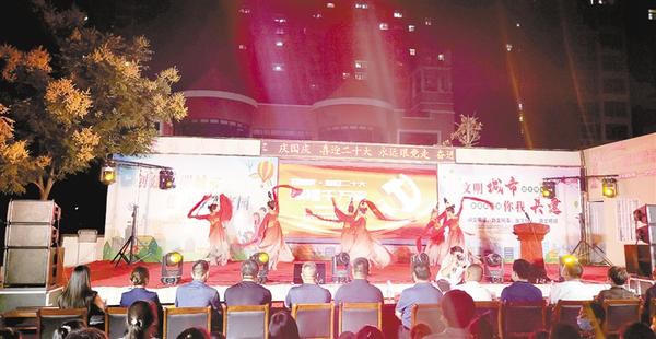 本报讯 9月17日晚,川汇区搬口办事处盛和社区在盛和家园小区举行了一场“迎国庆·喜迎二十大 幸福千万家”文艺汇演,居民们相聚在广场,共同欣赏这场晚会。
